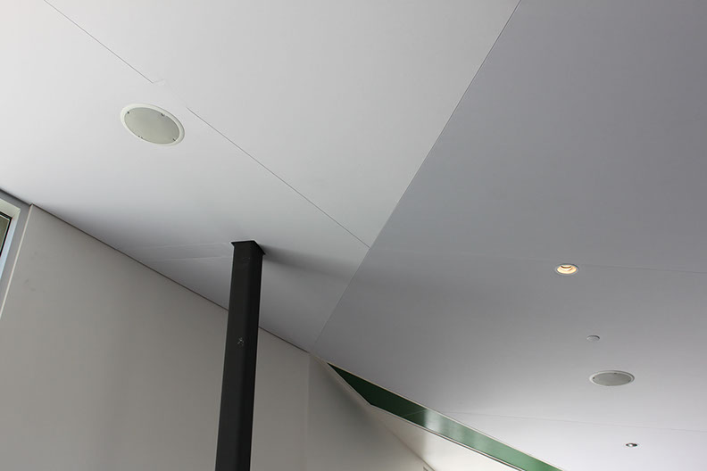 Acoustical ceiling panels in Girl Scouts - Parsons Leadership Center For Girls and Women at Camp South Mountain were installed to control reflections and the build up of sound within the multi-purpose room.