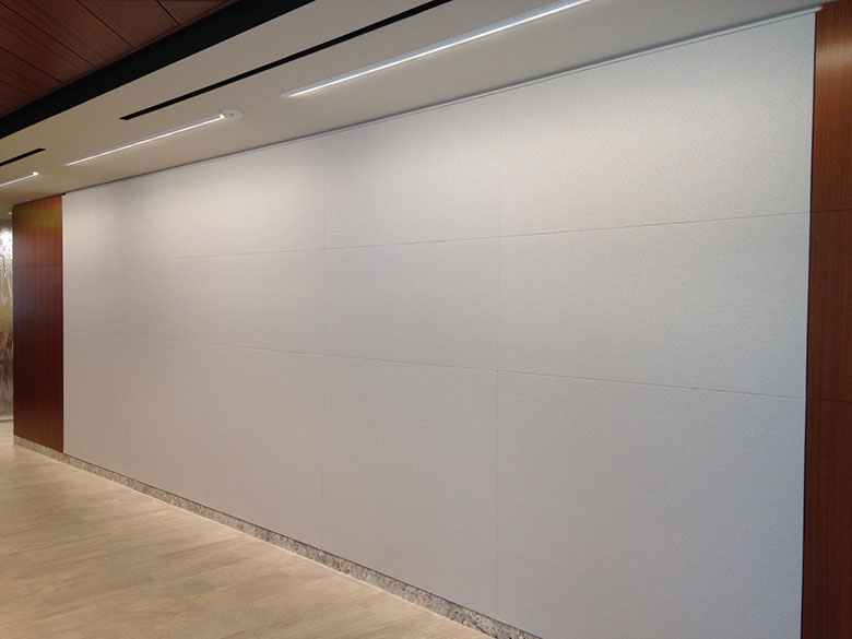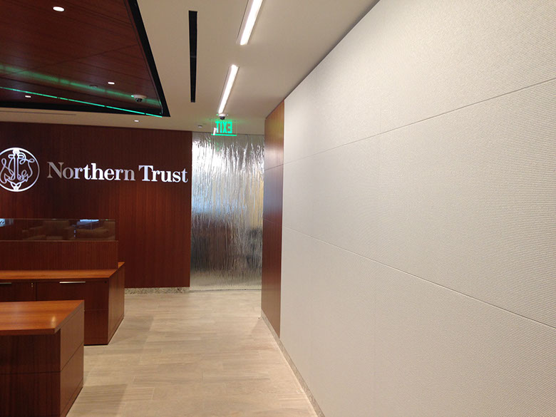 Fabric wrapped panels installed in various location at Northern Trust Bank, Biltmore.