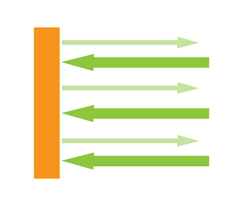Reflected sound strikes a surface or several surfaces before reaching the receiver. These reflections can have unwanted or even disastrous consequences. Although reverberation is due to continued multiple reflections, controlling the Reverberation Time in a space does not ensure the space will be free from problems from reflections.