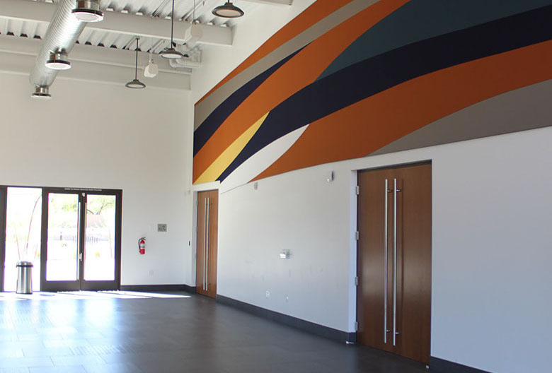 We worked very closely with Copper Hills Church to design and install this 60ft acoustic mural to control the noise reflections in their performing arts auditorium. The design is meant to compliment the existing space and reflect the local landscape.