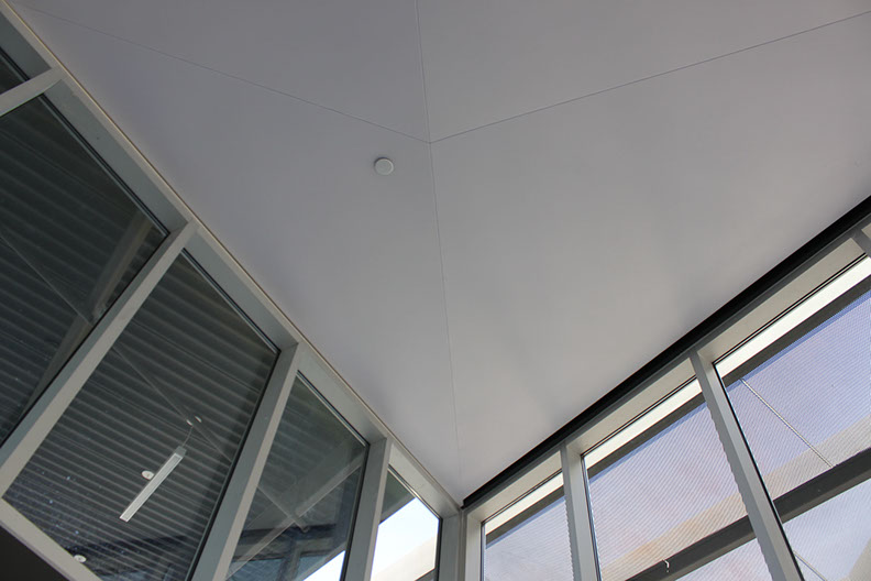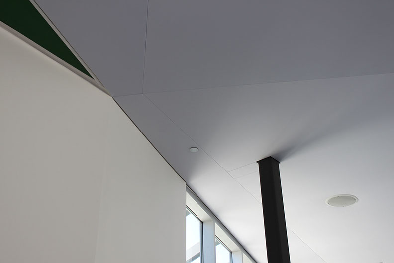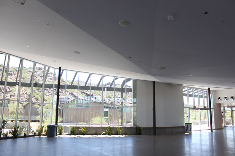 Acoustical ceiling panels in Girl Scouts - Parsons Leadership Center For Girls and Women at Camp South Mountain were installed to control reflections and the build up of sound within the multi-purpose room.