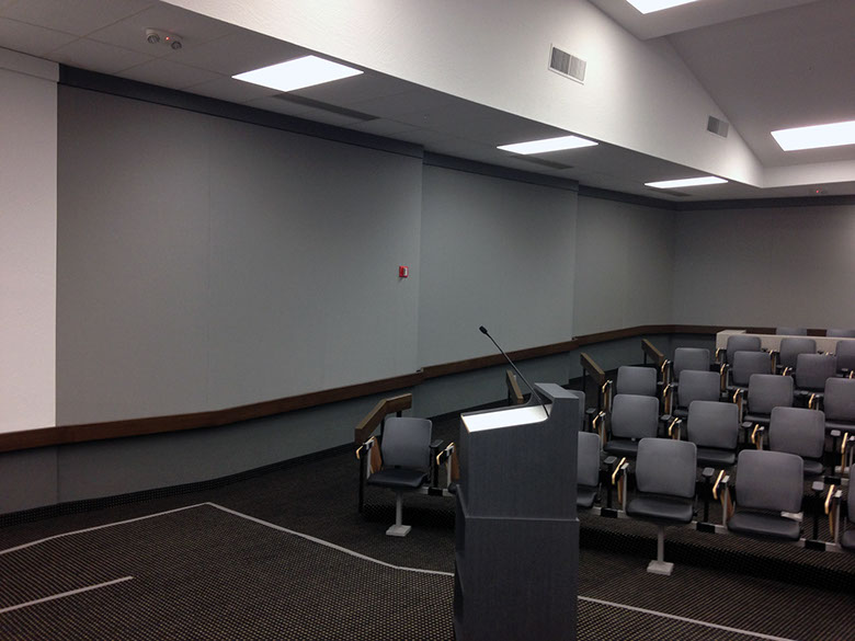 Acoustic panels installed in this lecture hall to control the build up of sound.