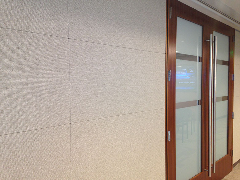 Fabric wrapped panels installed in various location at Northern Trust Bank, Biltmore.