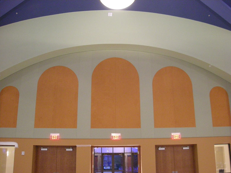 Fabric wrapped panels in places of worship.